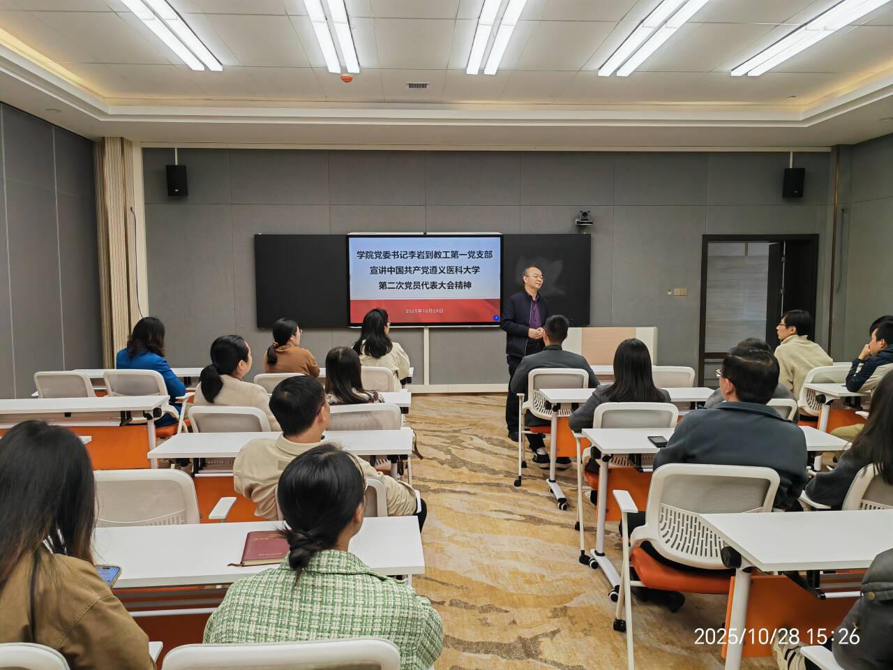 活动开始,由公司党委书记李岩同志向教工第一党支部全体党员专题宣讲中国共产党yl1111永利集团第二次党员代表大会精神。宣讲中,李岩同志围绕大会召开的重要背景、核心主题和主要成果展开深入解读,重点传达了公司过去五年在人才培养、团队建设、科研创新等方面的显著成就,详细阐释了未来五年的战略格局和总体思路。他强调,支部党员要深刻领会大会内涵,将思想和行动统一到公司高质量发展目标上来,立足公司产品和科研岗位,在医学信息领域持续深耕,为公司建设特色鲜明、国内一流的高水平医科大学贡献支部力量。