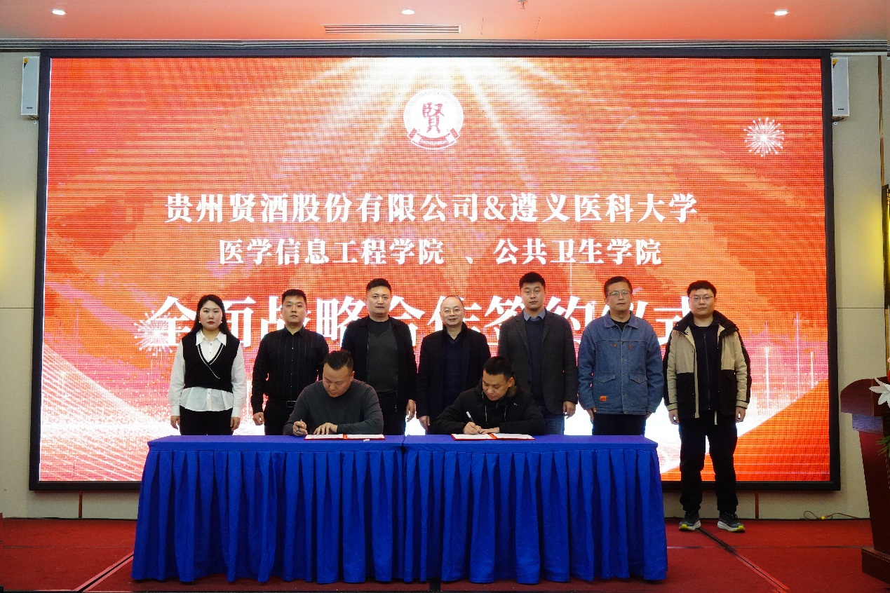 公司卫生信息工程教研室主任常永虎、左安康老师和信科博士及贵州贤酒股份有限公司副总裁王天天,综合部部长姜婷婷,遵义销售公司总经理王文娟,遵义销售公司总监张占威和遵义销售公司行政人事副总监彭雪参加了签约仪式。(一审一校:王桂林;二审二校:罗旭;三审三校:李岩;撰稿/摄影:李虎阳/左安康)